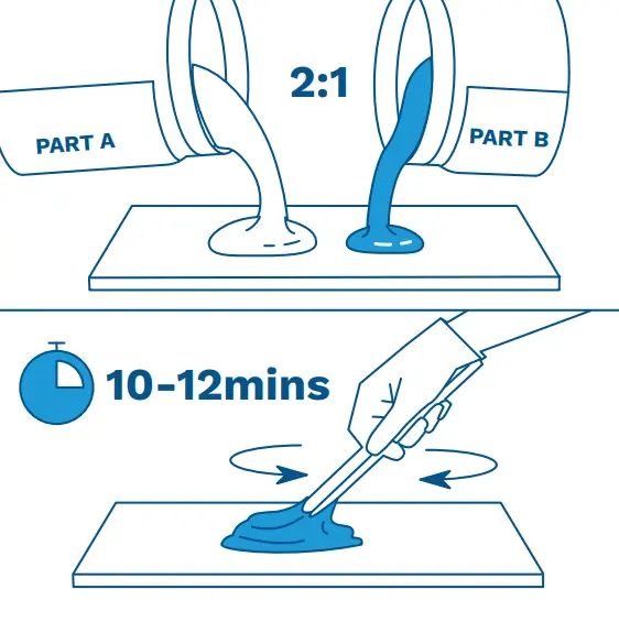 Mix Part A and B in 2:1 ratio by volume and use within 10 to 12 minutes