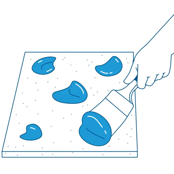 Apply a thick blob of the mixture at corners and centre or apply a thin layer evenly on entire surface of slab